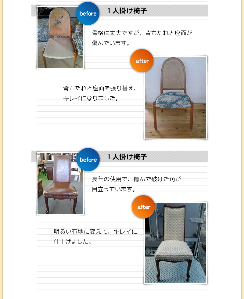 他の事例を見る 実際に椅子を張り替えされた方の話をお聞きください